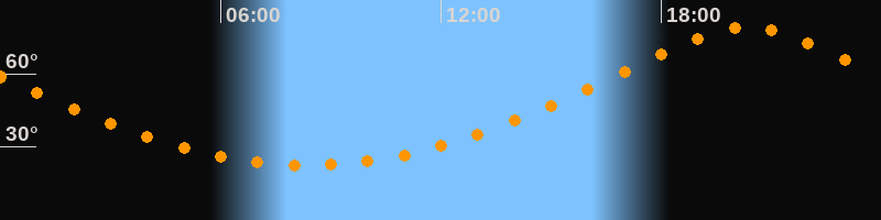 | Höchster Stand (Kulmination) | 20:21 Uhr (h = 79°) |