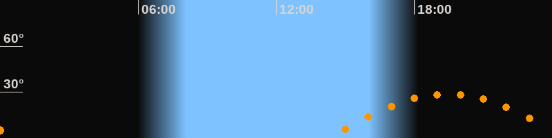 | Höchster Stand (Kulmination) | 19:26 Uhr (h = 28,7°) |