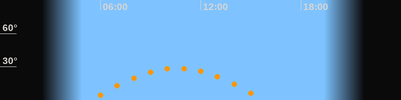 | Höchster Stand (Kulmination) | 10:35 Uhr (h = 28,7°) |