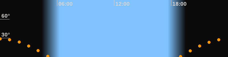 | Untergang | 05:14 Uhr im Westen (αAz = 253,9°) |