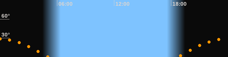 | Untergang | 05:06 Uhr im Westen (αAz = 253,9°) |