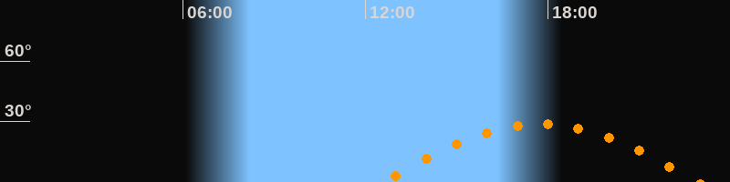 | Höchster Stand (Kulmination) | 17:46 Uhr (h = 28,7°) |