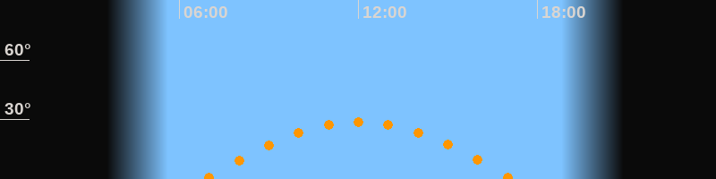 | Höchster Stand (Kulmination) | 12:00 Uhr (h = 28,7°) |