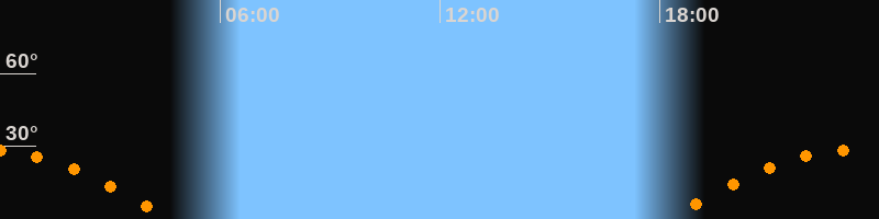 | Aufgang | 18:15 Uhr im Osten (αAz = 106,1°) |