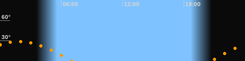 | Untergang | 07:02 Uhr im Westen (αAz = 253,9°) |