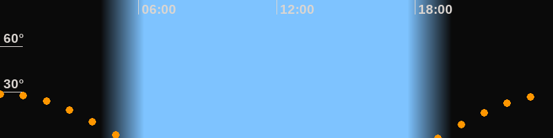 | Untergang | 05:19 Uhr im Westen (αAz = 253,9°) |