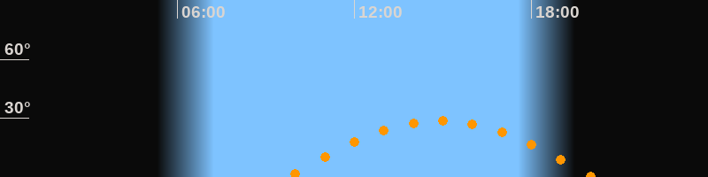 | Höchster Stand (Kulmination) | 14:55 Uhr (h = 28,7°) |