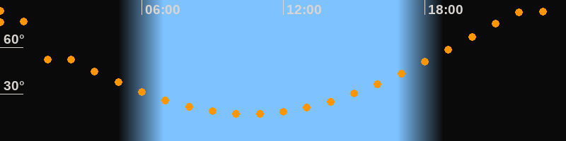 Höchster Stand (Kulmination)22:33 Uhr (h = 84,1°)