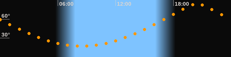 Höchster Stand (Kulmination)20:28 Uhr (h = 84,1°)