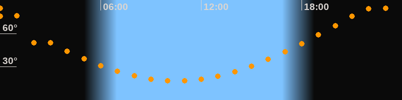 Höchster Stand (Kulmination)22:30 Uhr (h = 84,1°)