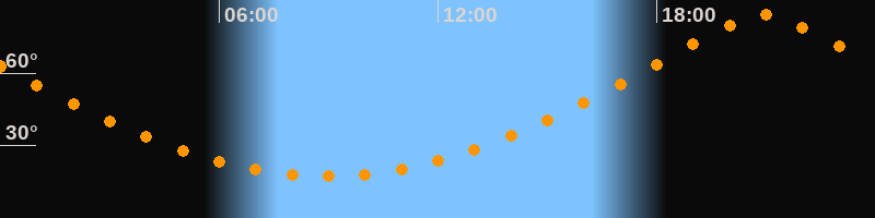 Höchster Stand (Kulmination)20:56 Uhr (h = 84,1°)