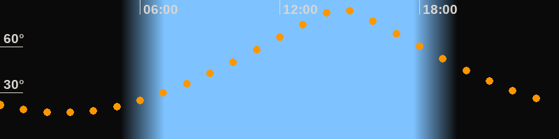 Höchster Stand (Kulmination)14:38 Uhr (h = 84,1°)