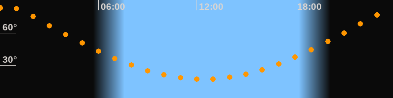 Höchster Stand (Kulmination)00:22 Uhr (h = 84,1°)