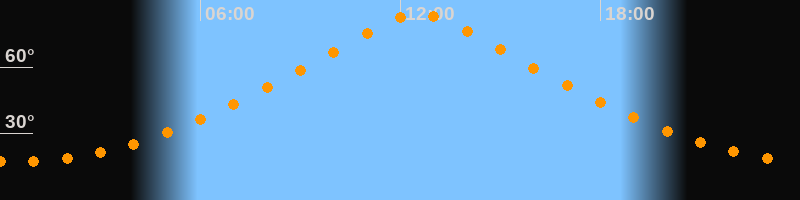 Höchster Stand (Kulmination)12:33 Uhr (h = 84,1°)