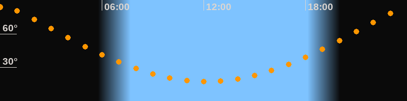 Höchster Stand (Kulmination)00:07 Uhr (h = 84,1°)