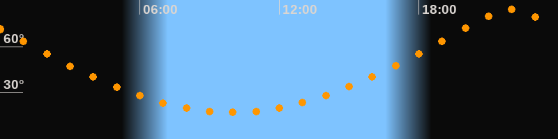 Höchster Stand (Kulmination)21:57 Uhr (h = 84,1°)