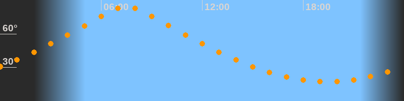Höchster Stand (Kulmination)07:30 Uhr (h = 84,1°)