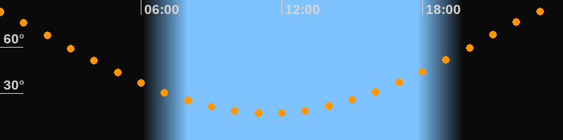 Höchster Stand (Kulmination)23:26 Uhr (h = 84,1°)