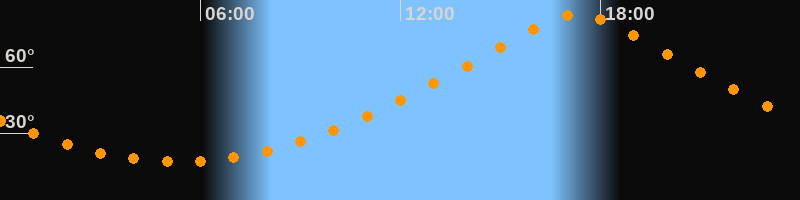 Höchster Stand (Kulmination)17:19 Uhr (h = 84,1°)