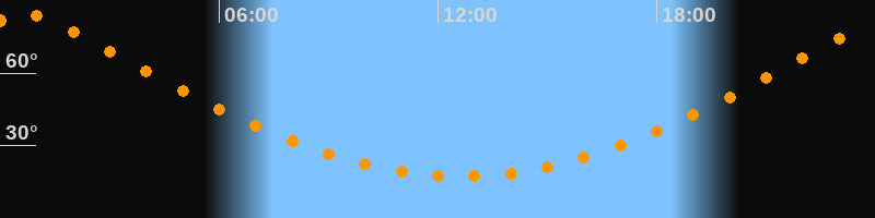 Höchster Stand (Kulmination)00:38 Uhr (h = 84,1°)