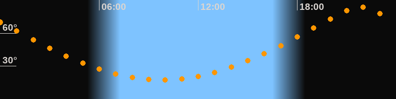 Höchster Stand (Kulmination)21:48 Uhr (h = 84,1°)