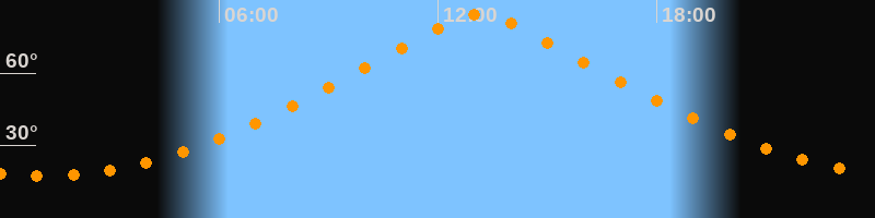 Höchster Stand (Kulmination)13:09 Uhr (h = 84,1°)