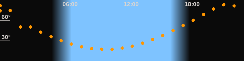 Höchster Stand (Kulmination)22:19 Uhr (h = 84,1°)