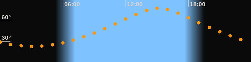 | Höchster Stand (Kulmination) | 15:07 Uhr (h = 78,5°) |
