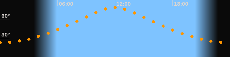 | Höchster Stand (Kulmination) | 11:56 Uhr (h = 78,5°) |