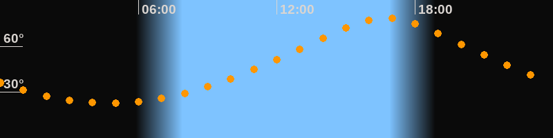 | Höchster Stand (Kulmination) | 16:43 Uhr (h = 78,5°) |