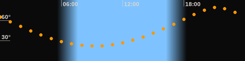 | Höchster Stand (Kulmination) | 21:13 Uhr (h = 79,1°) |