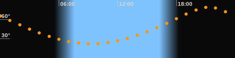 | Höchster Stand (Kulmination) | 21:17 Uhr (h = 79,1°) |