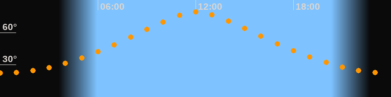 | Höchster Stand (Kulmination) | 12:03 Uhr (h = 79,1°) |