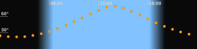 | Höchster Stand (Kulmination) | 13:51 Uhr (h = 79,1°) |