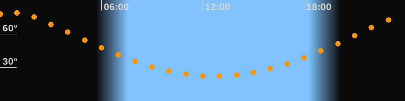 | Höchster Stand (Kulmination) | 00:40 Uhr (h = 79,1°) |