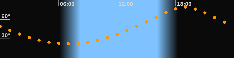 | Höchster Stand (Kulmination) | 18:58 Uhr (h = 79,1°) |