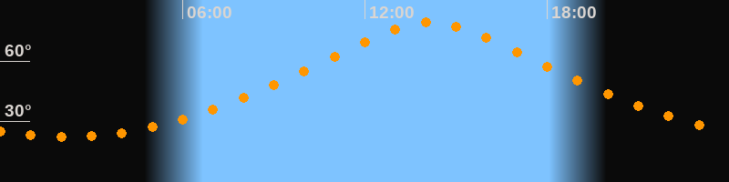 Höchster Stand (Kulmination)14:09 Uhr (h = 79,1°)