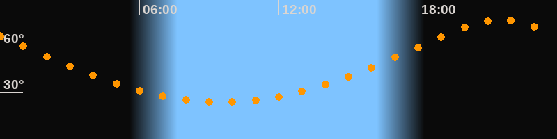 | Höchster Stand (Kulmination) | 21:31 Uhr (h = 77,4°) |