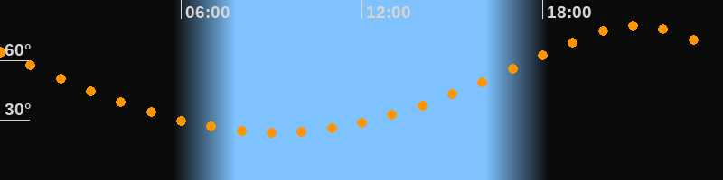 | Höchster Stand (Kulmination) | 21:06 Uhr (h = 77,4°) |
