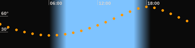 | Höchster Stand (Kulmination) | 18:10 Uhr (h = 77,4°) |