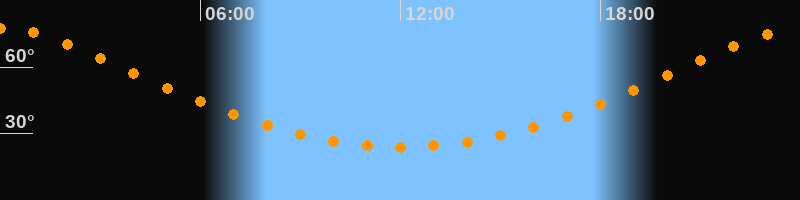 | Höchster Stand (Kulmination) | 00:03 Uhr (h = 77,4°) |