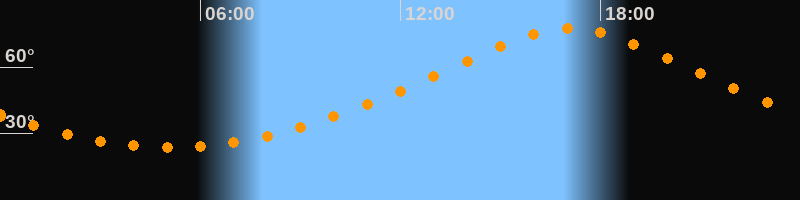 | Höchster Stand (Kulmination) | 17:05 Uhr (h = 77,4°) |
