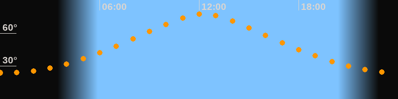 | Höchster Stand (Kulmination) | 12:15 Uhr (h = 77,4°) |