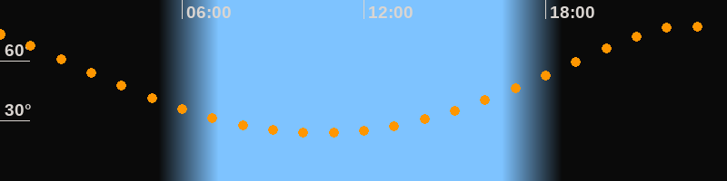 | Höchster Stand (Kulmination) | 22:34 Uhr (h = 77,4°) |