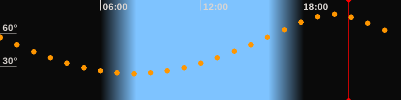 | Höchster Stand (Kulmination) | 19:56 Uhr (h = 77,4°) |