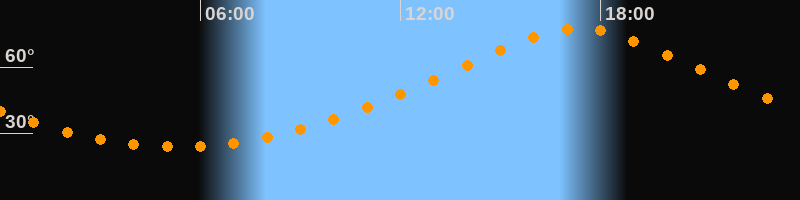 | Höchster Stand (Kulmination) | 17:20 Uhr (h = 77,4°) |