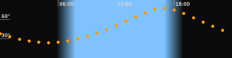 | Höchster Stand (Kulmination) | 16:54 Uhr (h = 77,4°) |