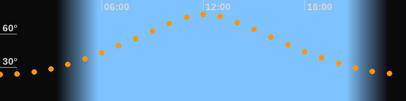 | Höchster Stand (Kulmination) | 12:05 Uhr (h = 77,4°) |