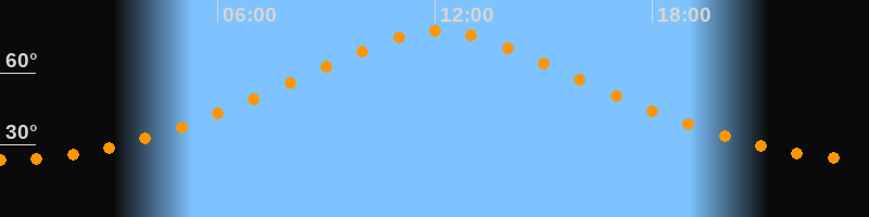 | Höchster Stand (Kulmination) | 12:06 Uhr (h = 77,4°) |