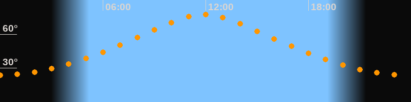 | Höchster Stand (Kulmination) | 11:54 Uhr (h = 77,4°) |